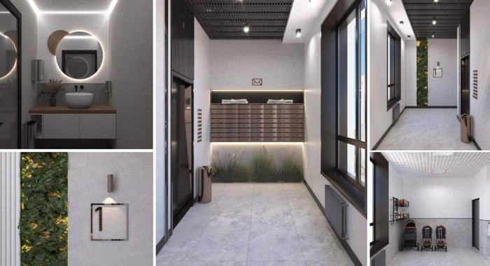 Каждый уголок жилого комплекса продуман для комфортного проживания и отдыха горожан. На первых этажах жителей встретят просторные холлы, до квартир доставят бесшумные лифты, а за счёт больших окон в помещениях всегда будет много света.